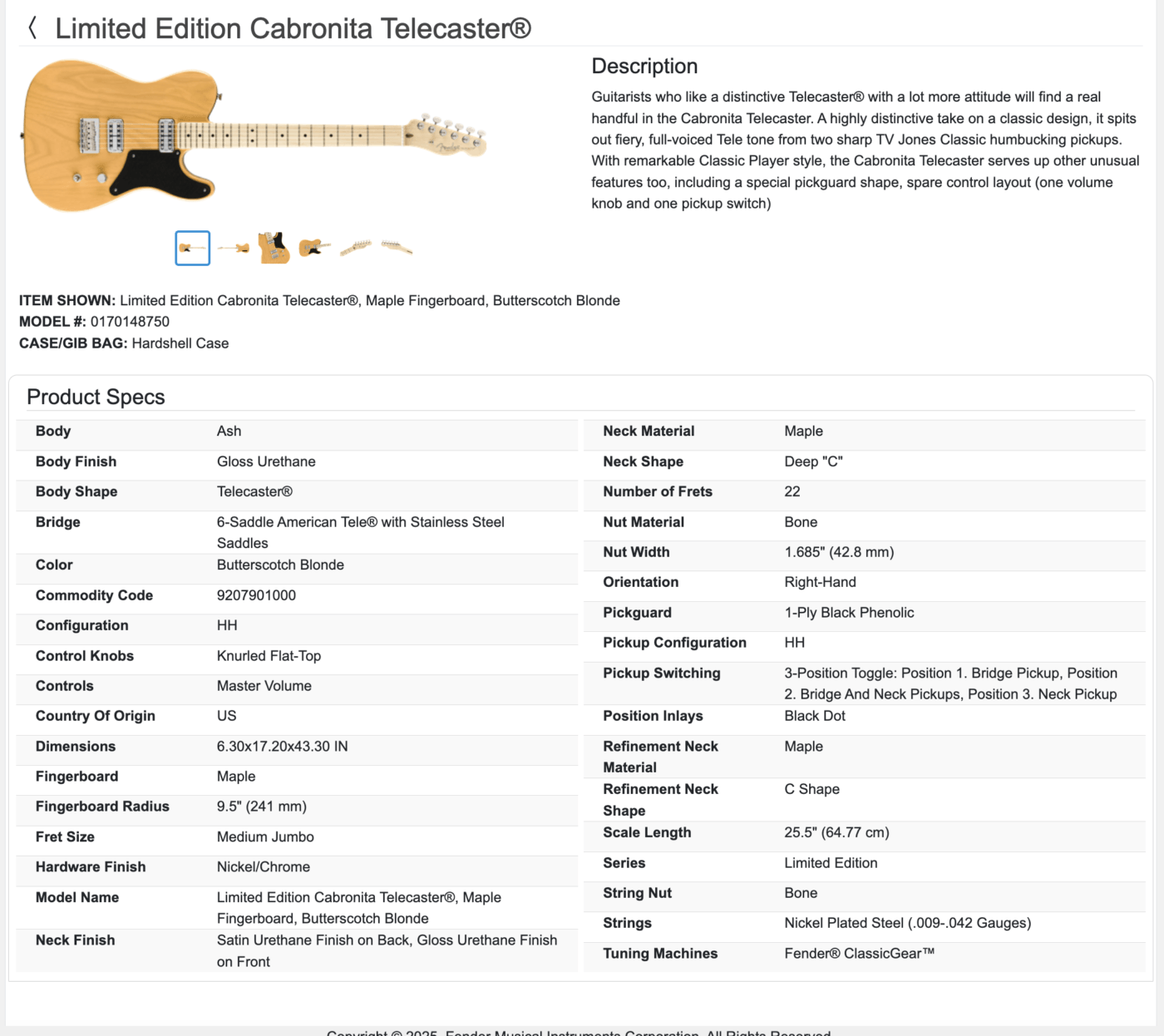 Learn MoreFender USA Limited Edition Cabronita Telecaster