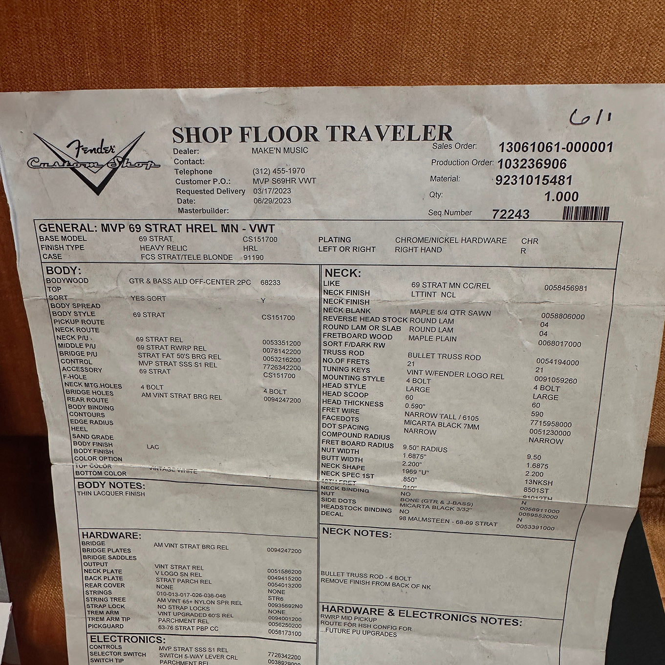Learn MoreFender Custom Shop 69 Heavy Relic Stratocaster Custom Order MVP edition