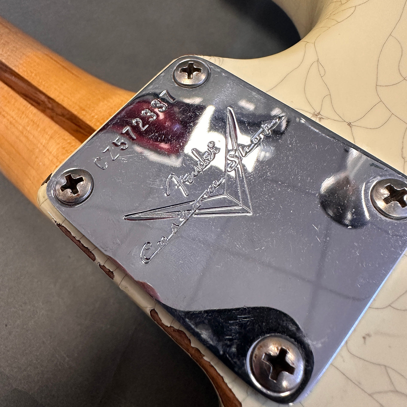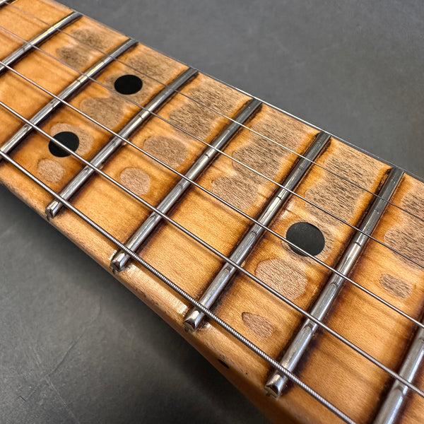 We are delighted to get our hands on this special edition MVP Strat, a very rare, limited edition. The MVP guitars have been custom ordered by select dealers, in this case Make'n Music in the USA. They commission unique spec models made with top end woods, lovely neck shapes and very cool finishes. This example is a 69 Strat with a lovely medium U shape neck which feels lovely to play with the narrow tall frets and 9.5 radius. Despite being a classic 69 four bolt configuration, it has the 70s style bullet truss rod (seldom seen on Custom Shop models) and Kluson style tuners. It's fair to say they have combined all the very best design appointments into one guitar. The finish is superb, very authentic and a very heavy Relic finish. This Strat is very Hendrix and has a winning formular of Hand wound 69s in the neck and middle position with a fat 50s in the bridge. This almost found its way into my personal collection. Being that these aren't sold new in the UK it’s unlikely we'll ever see another. Just one thing to note.... the floor traveller states that it's routed for humbuckers in the neck and bridge, this isn't the case. It's a standard SSS vintage route inside.