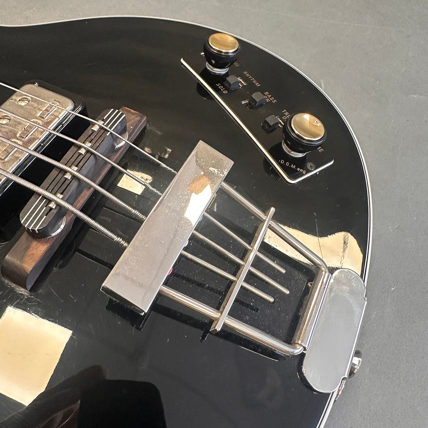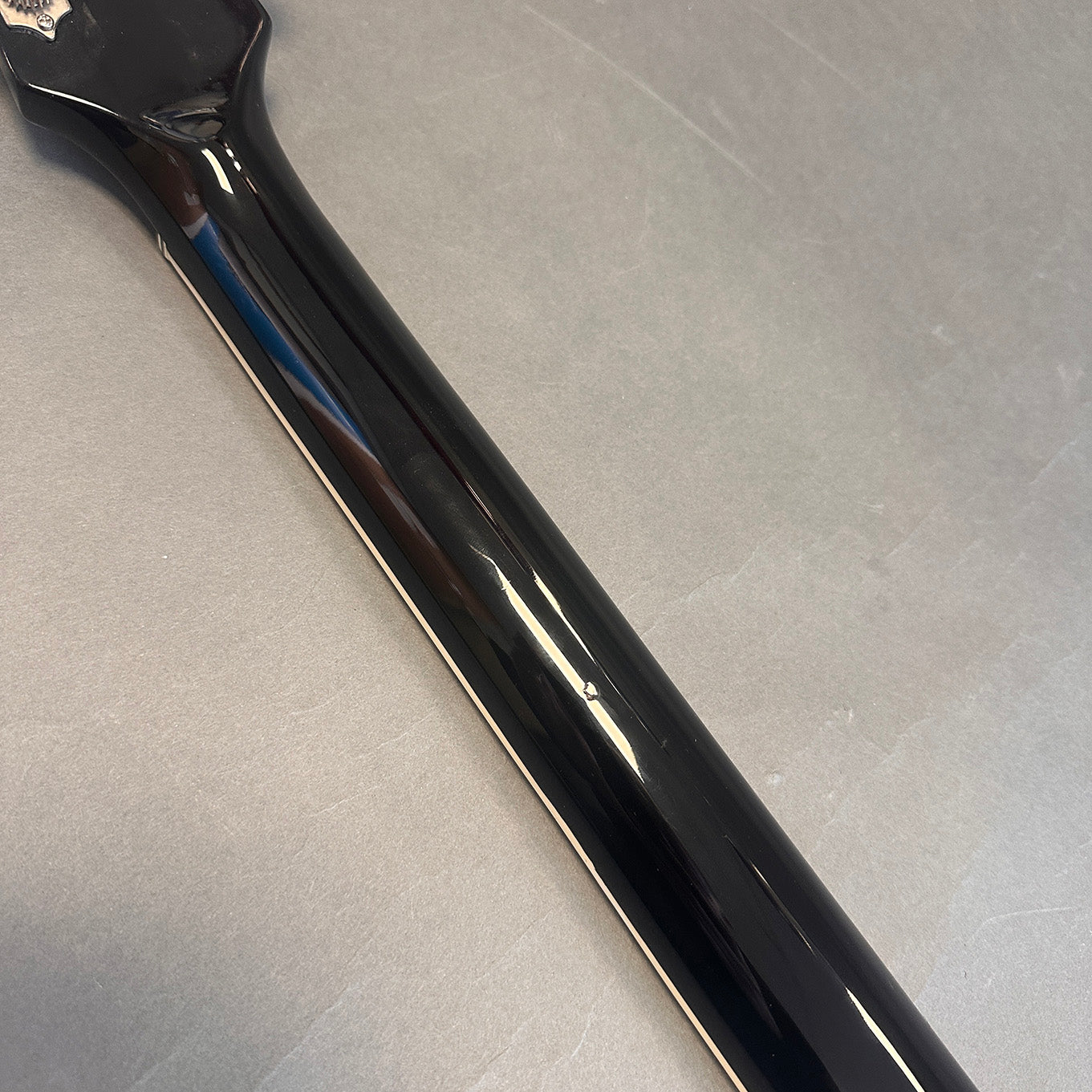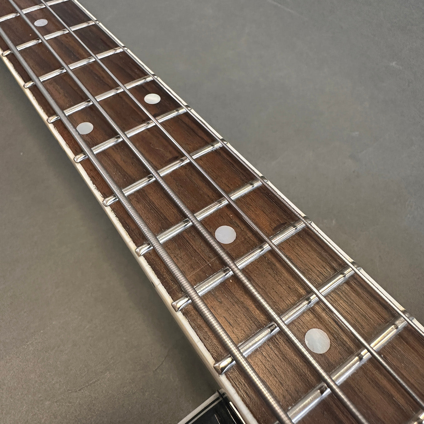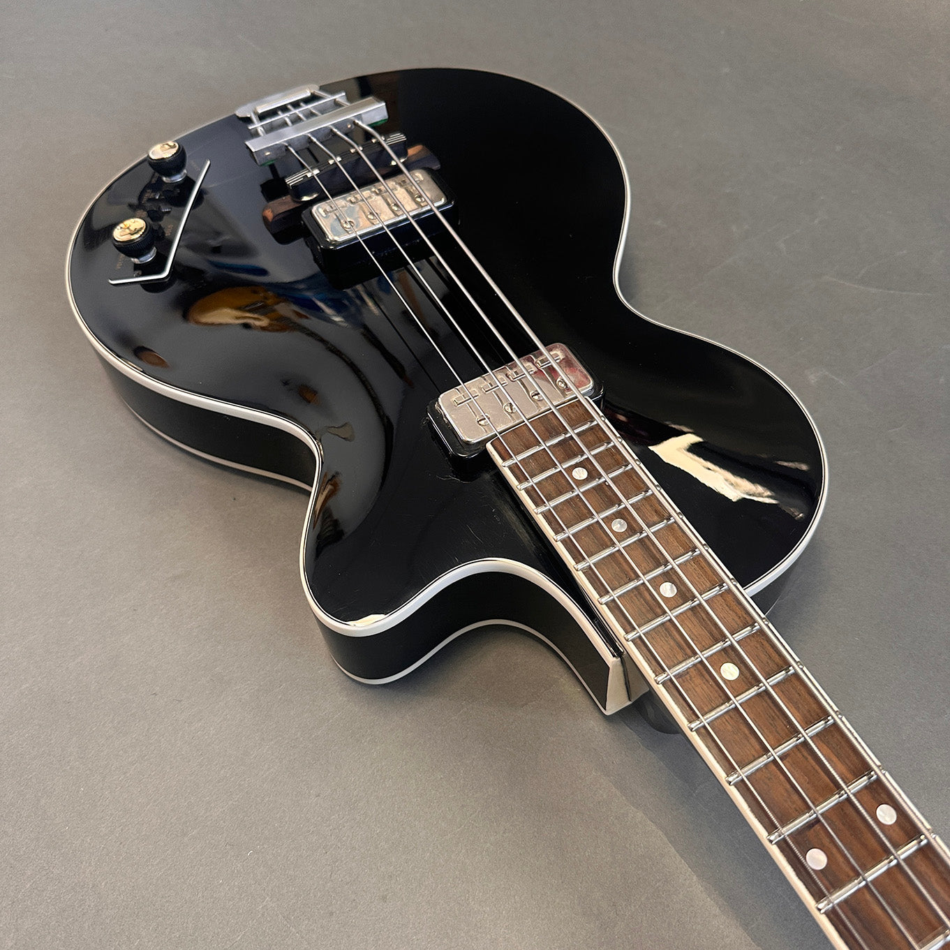 This is the Höfner Contemporary Series 500/2 Club Bass, serial J1114 0030, dating to late 2014. The Club Bass has the short-scale feel and warm, rounded tone Höfner are known for, but with a more compact singlecut body shape that balances better on a strap compared to the violin bass. It features the staple-style pickups, traditional control panel and a comfortable neck profile. This example has had the pickguard removed but aside from that is all original. It remains in excellent overall condition with a few marks here and there. A lovely sounding bass with plenty of character.